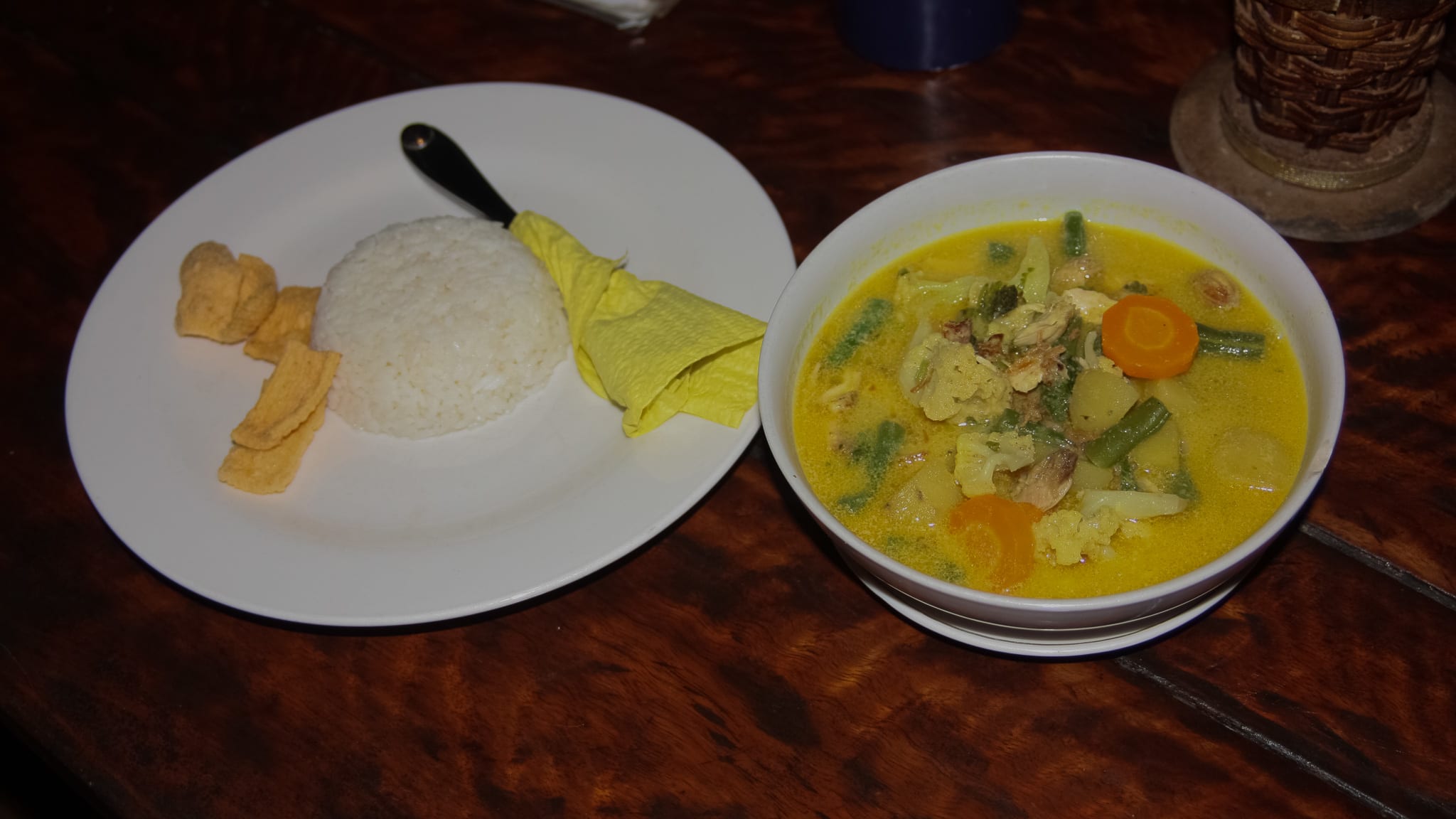 Here you can try Soto which is a traditional Indonesian soup mainly composed of broth, meat and vegetables. Another dish is Rendang, originally from West Sumatra. It’s a meat slow cooked in coconut milk and spices until it becomes tender. There is also the option to get potato rendang. Sambal is an Indonesian chilli sauce, various recipes are usually served as hot and spicy condiments for dishes. Other foods are noodle soup, fried rice, sandwiches, indonesian coffee, etc.